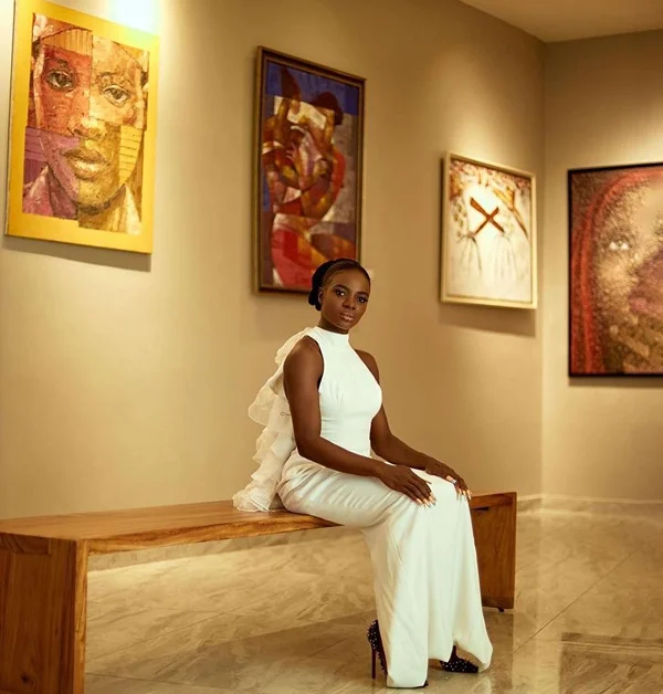 Tobi Amusan looks graceful and chic in a white halter-neck sheath dress designed by Bertha Amuda. She is featured in This Day style, November 2022 feature.