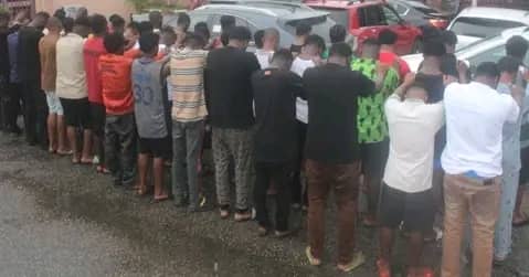 Those arrested are Okpoikibo Blessing, Seth Chukwumah, Success Oghenekuwe, Ugboko Constance, Michael Amen, Ebiren Emmanuel, Emuerhime Louis Victory, Wisdom Uwaoluetan, Odiri Ejiro, Ejenavi Maro, Oyinkepreye Eric, Prosper Enahoro, Ogbebor Princewill, Ogbebor Clinton, Enabor Peter Odianosen, Apoi Ufuoma, Apoi Purity, Emmanuel Chukwuemeka, Andrew Ogwu, Joshua Osiobe, Christian Skinn, Opiete Godbless and Ugboko Justin.