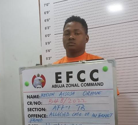 The Economic and Financial Crimes Commission, EFCC, Abuja Zonal Command, has arraigned one Aiosa Kelvin Orhue before Justice C.E. Nwecheonwu of the FCT High Court, Kuje, Abuja on a three count charge bordering on love scam.