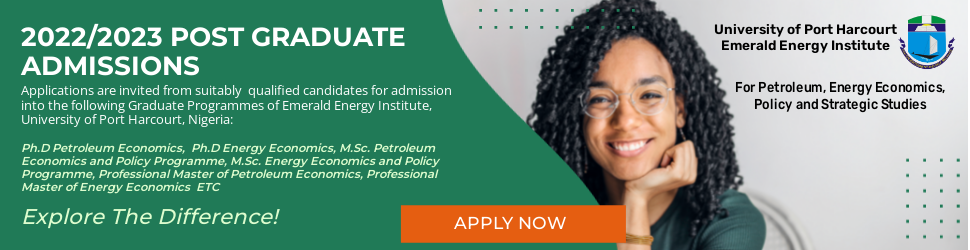 Applications are invited from suitably qualified candidates for admission into the following Graduate Programmes of Emerald Energy Institute, University of Port Harcourt, Nigeria: