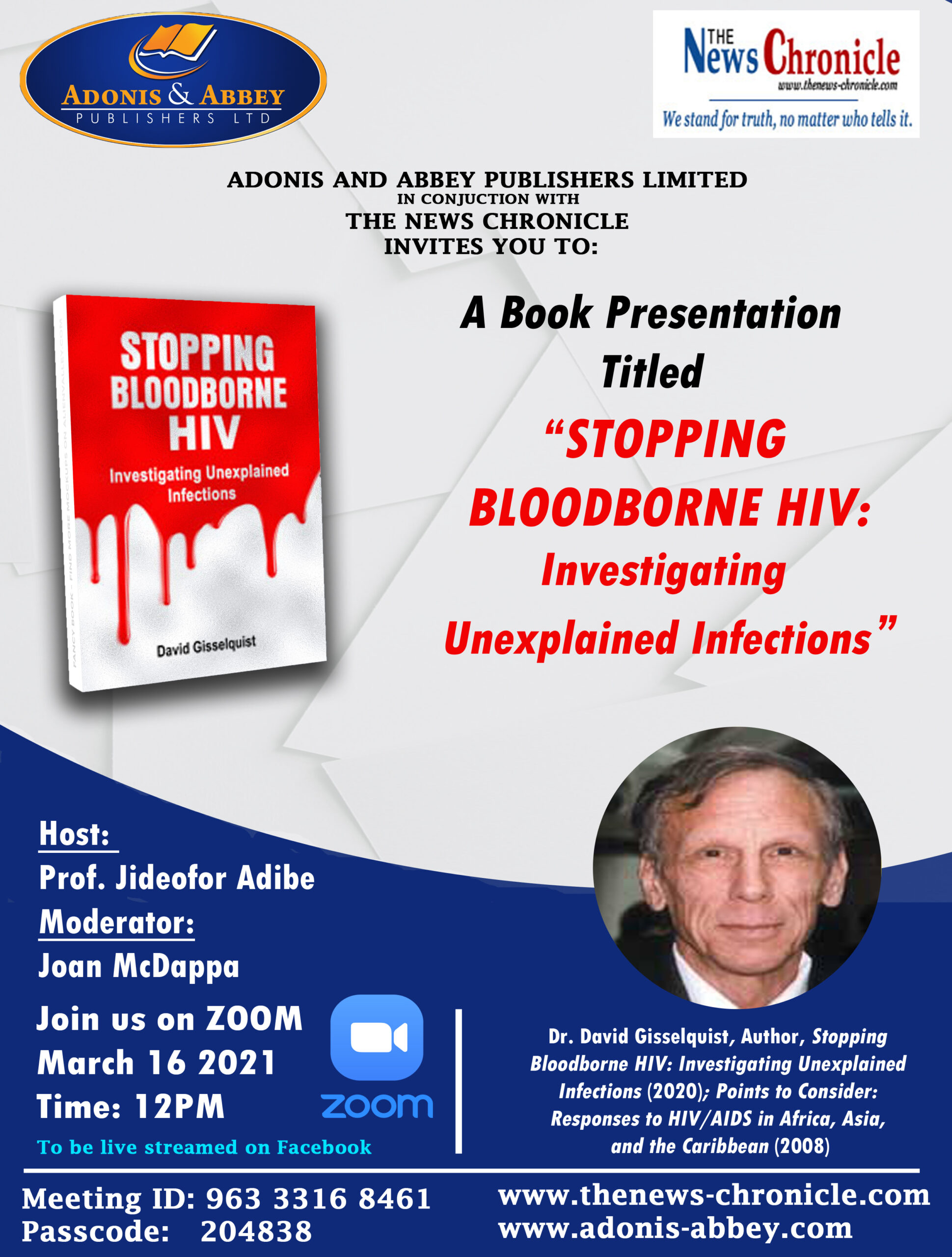 Adonis & Abbey Publishers Ltd, a London and Abuja based publisher of professional books and peer-reviewed academic journals, in conjunction with The News Chronicle, an online Newspaper, will today, host Dr. David Gisselquist in a book presentation.
