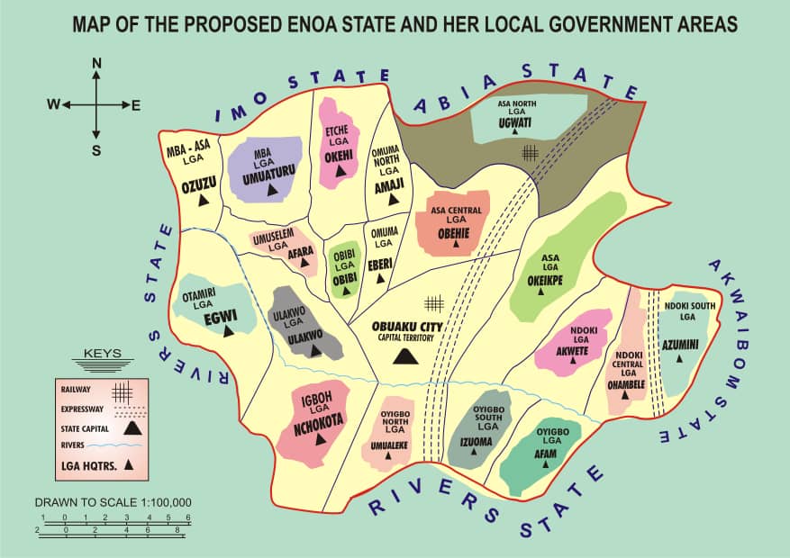 The proposed ENOA State according to him would be bounded with Abia in the North and North-East, Imo State in the North-West, Rivers in the South-East and South-West and Akwa-Ibom in the East.