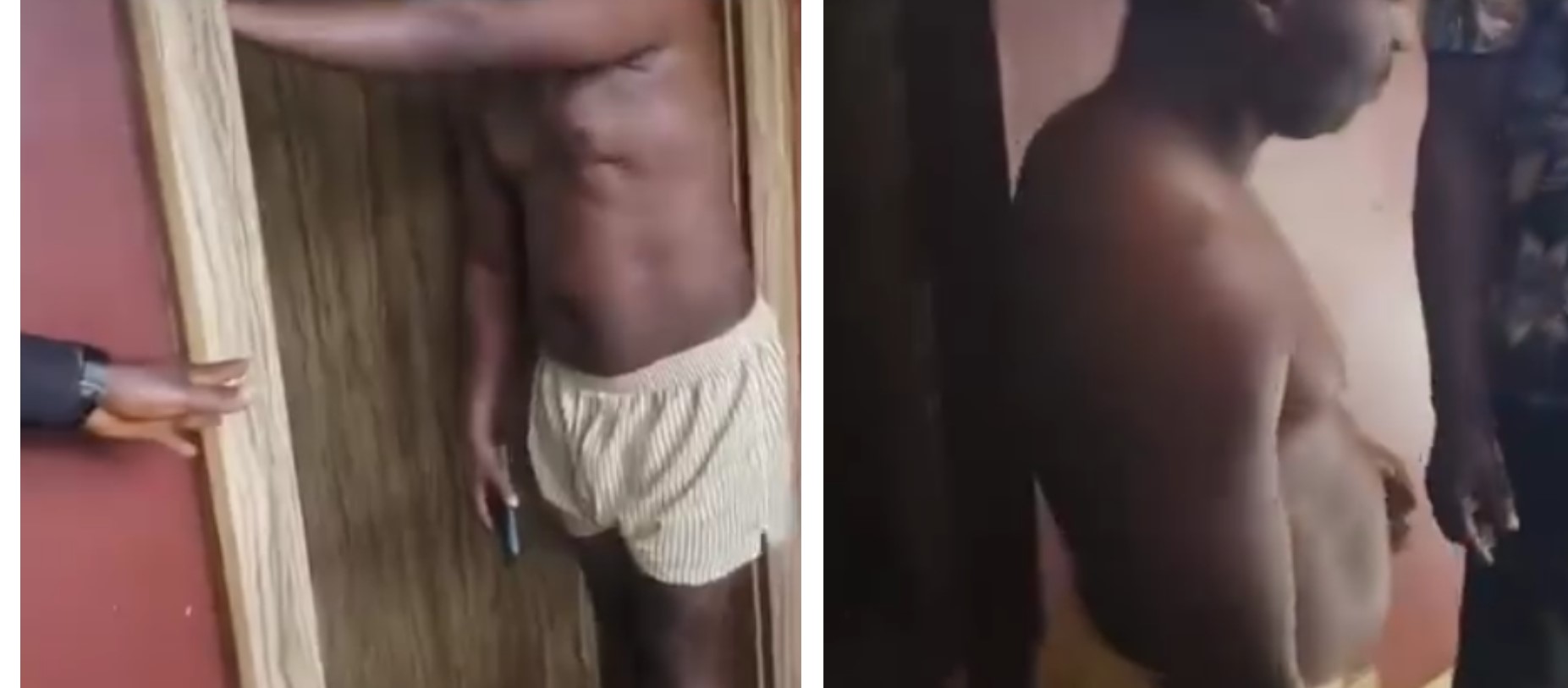 In the video which has now gone viral on social media, the married lecturer was seen in shorts, moving around agitatedly as he was being interrogated.