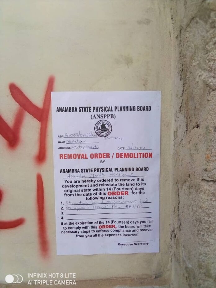 The demolition exercise which began as early as 10:30am on Friday, was led by the Executive Chairman of the Anambra State Physical Plannings Board, (ANSPPB) Barr. Chike Maduekwe, accompanied by the Onitsha North Local Government Chairman, Hon. Patrick Agha Mba, the General Manager of the Board, Mr Nwabufo Anene and armed security officers.