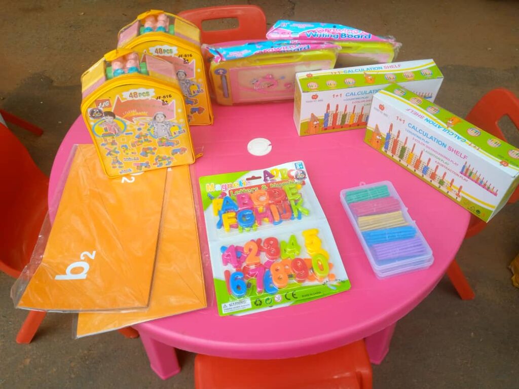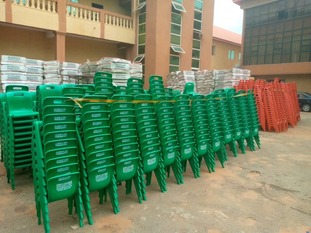 Others include 1104 units of Magnetic Board, 1104 units of ECCD toys, 12,000 units of JSS plastic chairs and tables, 966 units of iron frame teachers chairs and tables, and 6 shuttle buses for supervision.