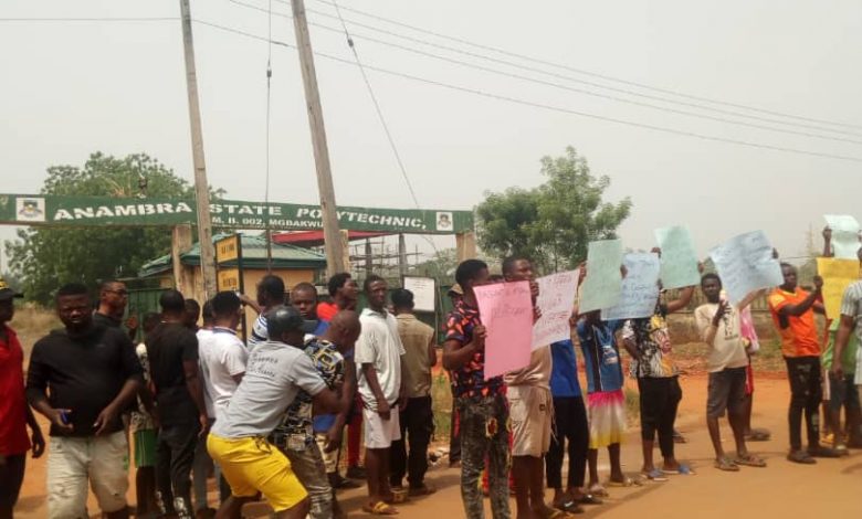 They bore placards with inscriptions such as,” Anambra State Polytechnic is a glorified secondary school,” “we need the intervention of the government here,” “we’re giving the school Authorities” among others.