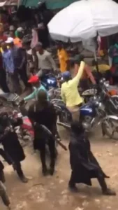 The parade which took place on Wednesday, May 4, had caused lot of  attraction in the market area. An eyewitness from the scene reports footages which reveals that the armed men were all dressed in black attires while holding different weapons. They marched amidst cheers from traders in the market.