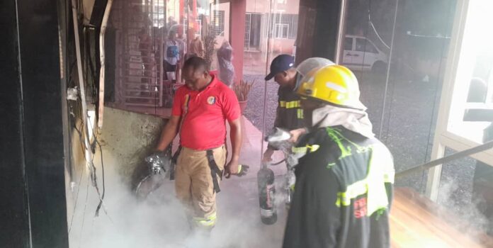 The fire, caused by an electrical surge, was brought under control using CO₂ extinguishers. The crew then carried out salvage operations to ensure the fire did not reignite.