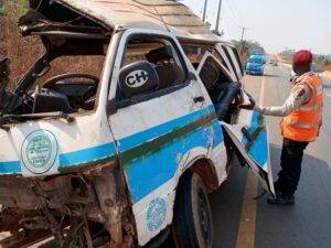 “Other eight persons comprising three male adults, three female adults and two female children sustained varying degrees of injury and were given first aid treatment by the nurse detailed at FRSC help area in Nteje,” he said.