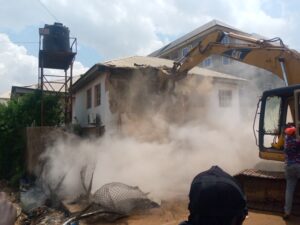 Also during the exercise, a school building belonging to St Dominic Parish, Fegge as well as a warehouse belonging to a popular Anambra billionaire were also demolished.