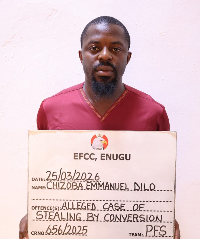 The suspect was arraigned by the Enugu Zonal Directorate of the Economic and Financial Crimes Commission, EFCC, on a two -count charge bordering on stealing.