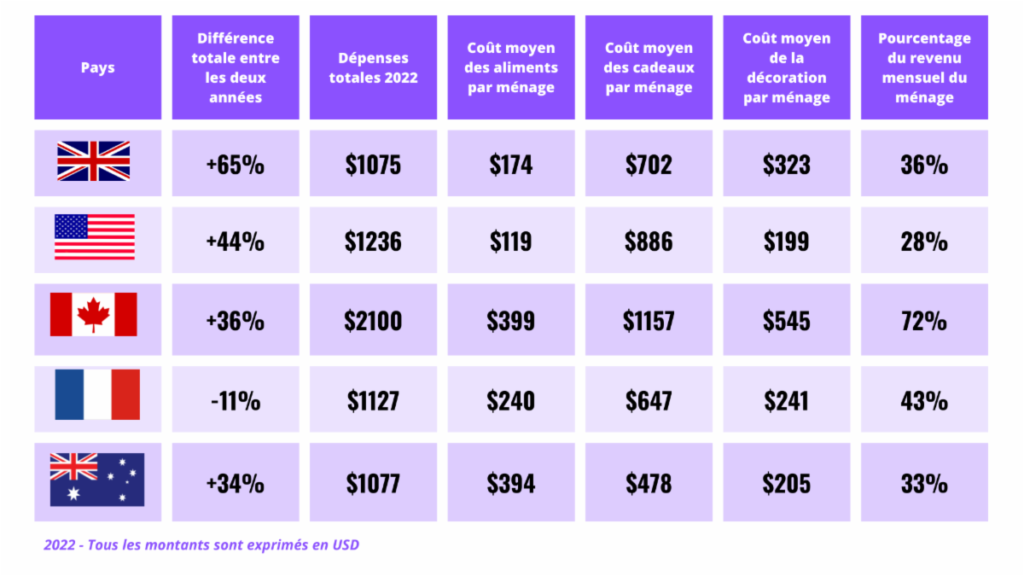 - The United Kingdom saw the greatest increase in the cost of Christmas at 65% higher than 2021
