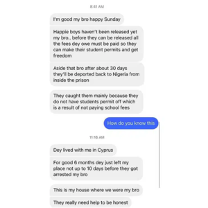 The friend in question disclosed in a hacked chat that they were both arrested for not having student permits since they had fallen behind on their school fees.