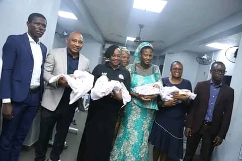 The General Manager, Lagos State Health Management Agency (LASHMA), Dr. Emmanuella Zamba, speaking during a visit to the hospital commended the Medical Director, Ikorodu General Hospital, Dr. Taiwo Hassan and the entire staff for a job well done. She added that the highest number of birth recorded on the Lagos State Health Scheme (LSHS) was triplets and that the Agency was extremely delighted in recording another milestone birth.