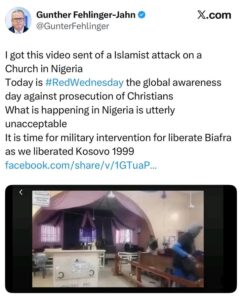 The Chairman of Austria’s Committee on NATO Enlargement has called for urgent international military intervention in Nigeria, following the circulation of a harrowing video showing Christians being brutally attacked during a church program in Kwara State.