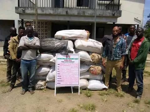 In Ondo, NDLEA operatives combing the Ala forest in Akure North LGA for a drug lord have intercepted eight suspected bandits terrorising farmers in the area. Those arrested include: Austin Dickson, 47, who is the gang leader; Sunday Adekunle, 31; Kayode Oluwaseun, 29; Kolawole Kazeem, 33; Oladimeji Makinde, 37; Emeka Charles, 46; Ojo Oluwadare, 40; and Lanre Oluwajana, 44.