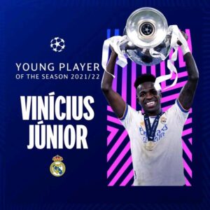 Vinicius Jr bagged the youngest player award for the 2021-22 UEFA Champions League campaign. The 21-year-old scored Madrid’s winning goal against Liverpool on Saturday to make it his 4th goal in the campaign with 7 assists.