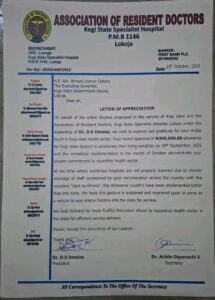 The Association of Resident Doctors (ARD), Kogi State Specialist Hospital, Lokoja, has expressed appreciation to Governor Ahmed Usman Ododo for approving a N300,000 allowance for doctors in the state.