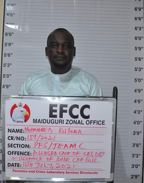 The Maiduguri Zonal Command of the Economic and Financial Crimes Commission, EFCC, on Friday, arraigned one Muhammad Abdullahi Kulloma before Justice Aisha Kumaliya of the Borno State High Court, Maiduguri for alleged N40, 500, 000.00 (Forty Million, Five Hundred Thousand Naira) fraud, contrary to Section 1(1) (b) of the Advance Fee Fraud and Other Fraud Related Offences Act, 2006 and punishable under Section 1(3) of the same Act.