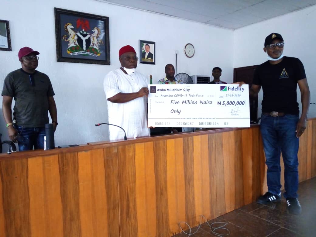 Anambra State Government today received a cheque for five million naira (#5,000,000) from MP-Infrastructure Limited, as a donation towards its efforts at battling the coronavirus challenge in the state.