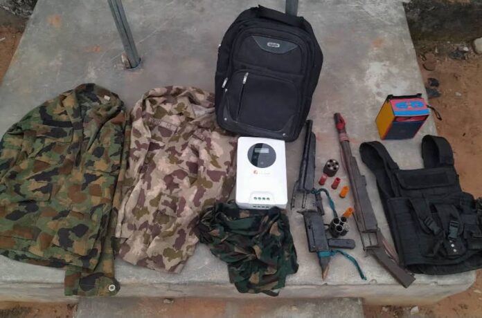 Recovered items included firearms, ammunition, military uniforms, mobile phones, bags, a solar controller, and ₦25,050 cash.