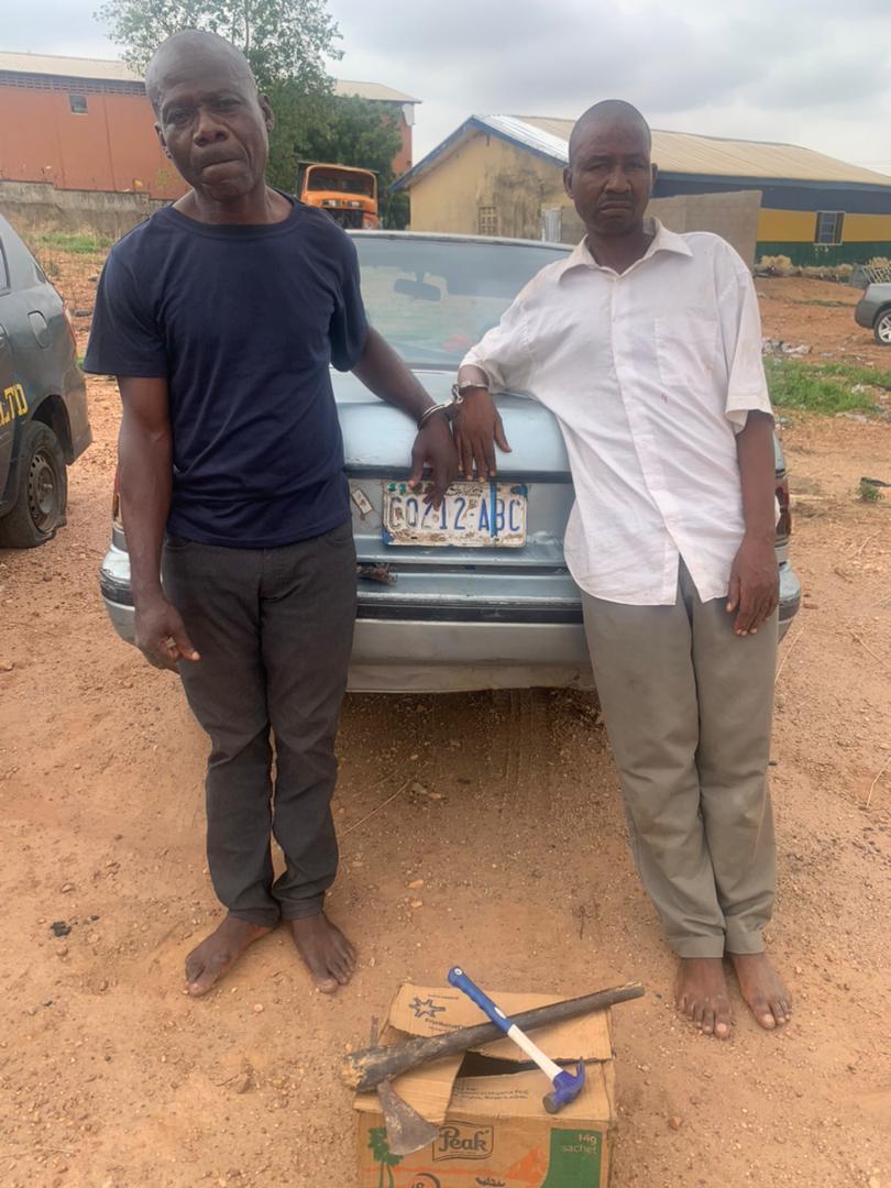 “Items recovered from the suspects include a Toyota carina II vehicle with registration number Abuja CO 212 ABC, one Axe and Hammer”.