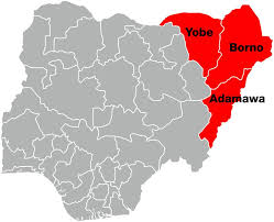 In the northeastern part of Nigeria, there are three states called Borno, Adamawa, and Yobe. These states are facing a lot of problems because of a group of people causing trouble, called insurgents.Â