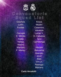 Los Blancos unveiled a 26-man squad sheet for Saturday’s UEFA Champions League final against English side Liverpool. The squad includes all senior and regular players with no player missing out. David Alaba was the only doubtful player for Real Madrid but surprisingly he is included in the squad sheet for the final. He was the only player sidelined due to muscle injury during Madrid’s last La Liga game against Real Betis.
