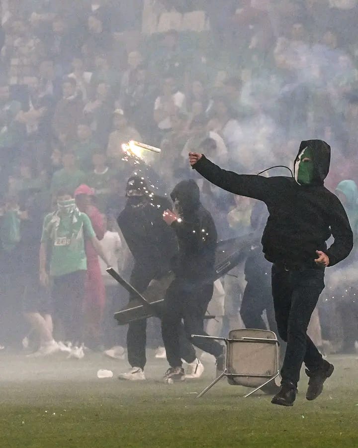 Saint Etienne’s fans raid stadium, and chase players with fireworks