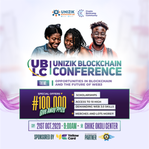 The conference with the theme, “Opportunities in Blockchain and the Future of Web3”, is to be held 9am, on the 21st of October, 2023, at Chike Okoli Centre, Nnamdi Azikiwe University, Awka.