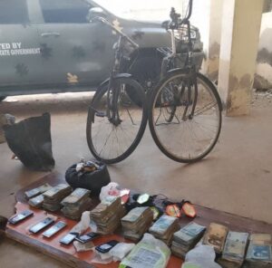 Items recovered included two bicycles, six small lamps, two solar power units, six new Tecno phones with chargers (without SIM cards), bags of garri, and N4,770,000 in cash.