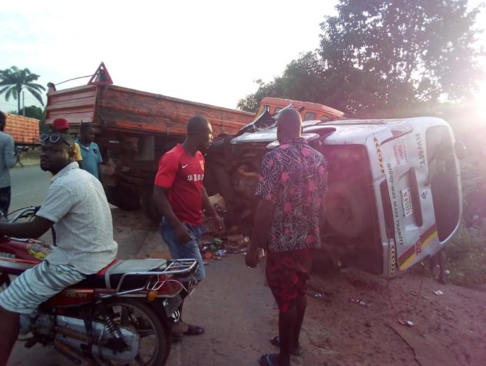 A serious crash in Anambra between a tipper and a commercial bus has resulted in two deaths while another had his legs amputated and twelve others sustaining varying degrees of injuries.
