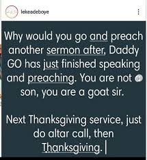 “Why would you go ahead to preach another sermon even after Daddy GO had just finished speaking and preaching. You are not a son, you’re a goat sir. Next Thanksgiving service, just do alter call, then Thanksgiving.’’